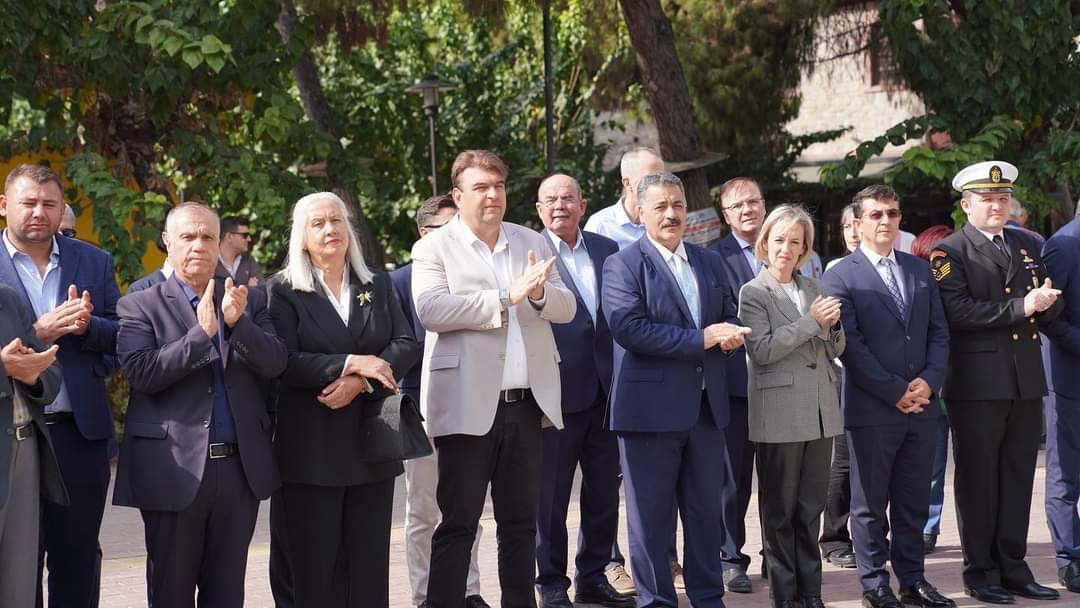 Seferihisar Cumhuriyet Meydanında düzenlenen törende Atatürk Anıtına ilçe muhtarlarını temsilen Orhanlı Mahallesi muhtarı Birgül Bozkurt, Camikebir Mahallesi muhtarı Refik Karaman çelenk sunumu gerçekleştirdi.
