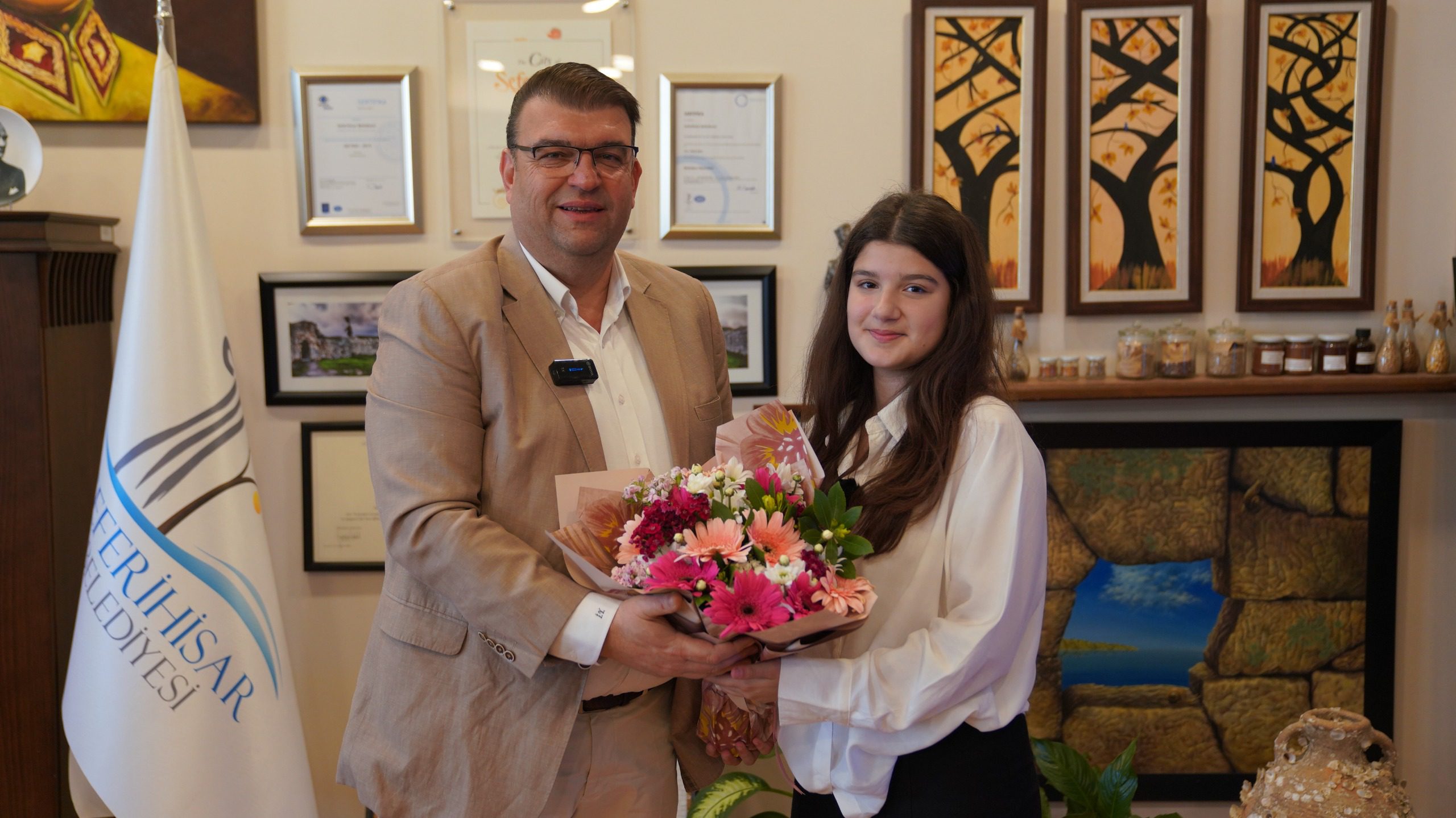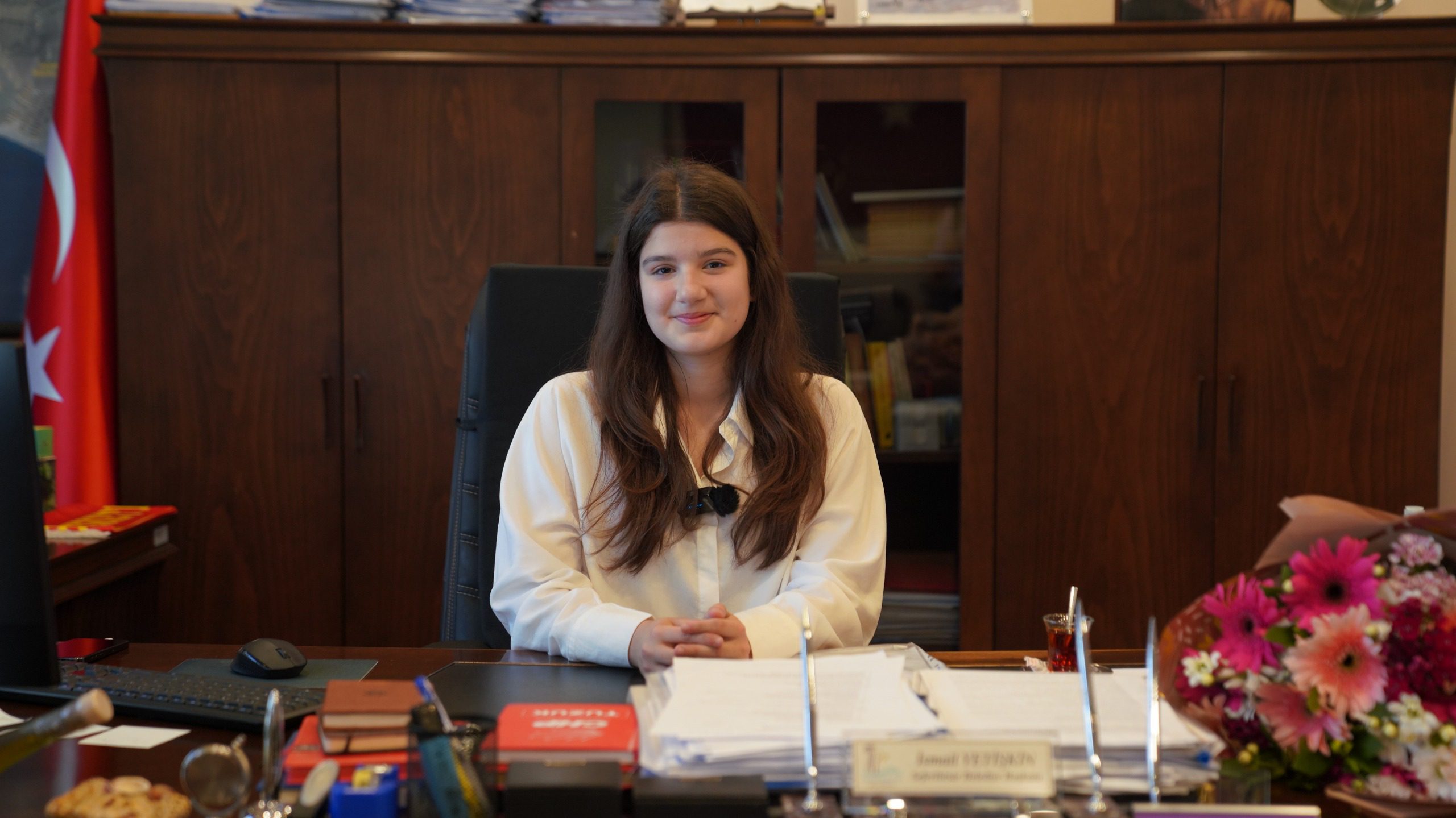 Başkan Yetişkin, ortaokul öğrencisi İnci’ye makam koltuğunu devrederek çocukların hayallerine, düşüncelerine ve geleceğe dair umutlarına dikkat çekti.