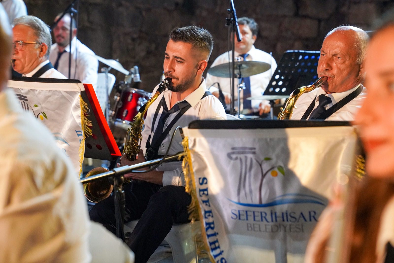 Şef Fevzi Topuzlu tarafından yönetilen Seferihisar Bandosu ve solist Bengü Şensoy Kaleiçini dolduran seyircilere birbirinden güzel marş çalarak şarkılar söyledi.
