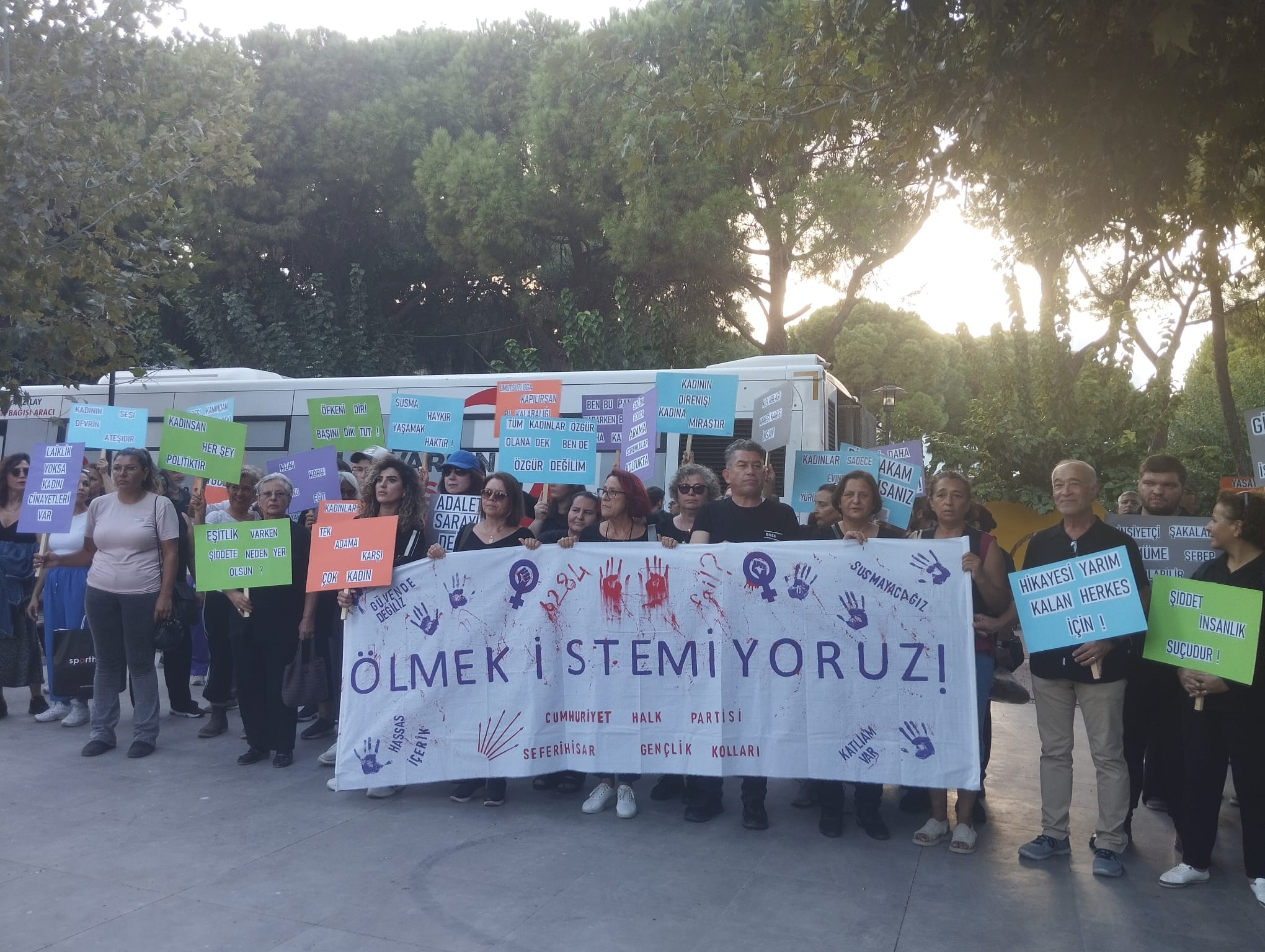Kadınların yaşam hakkını savunmak, adalet talebini haykırmak ve şiddeti durdurmak amacıyla düzenlenen etkinlikte, CHP Seferihisar Gençlik Kolları, CHP Seferihisar Kadın Kolları, sivil toplum kuruluşları ve çok sayıda vatandaş, Seferihisar Pazar Yeri’nden pankartlar eşliğinde sloganlar ve alkışlar eşliğinde Cumhuriyet Meydanı’na yürüdü. Basın açıklamasına CHP Seferihisar İlçe Başkanı Rahmi Tezel Çınar da katılarak destek verdi.