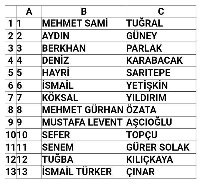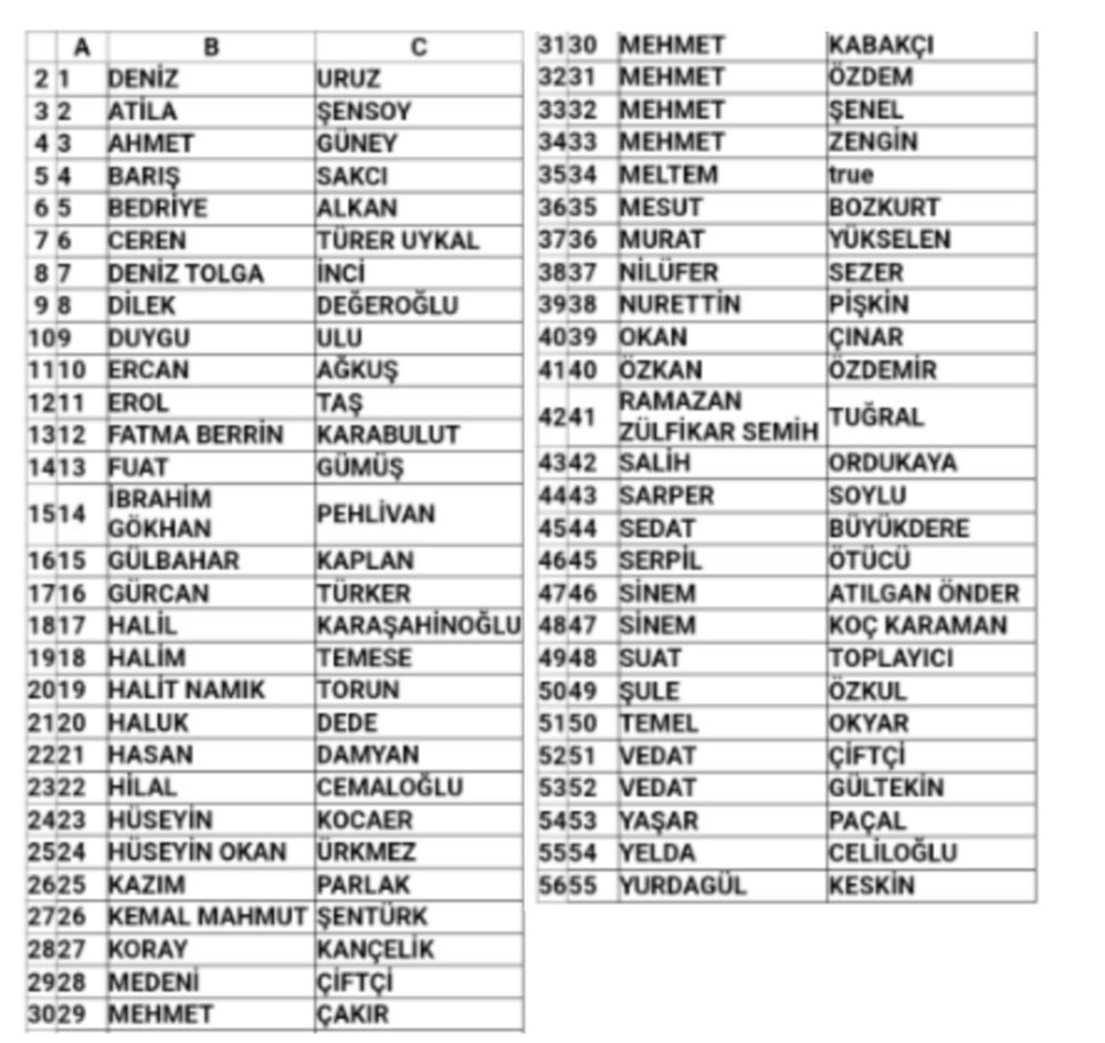 Cumhuriyet Halk Partisi İlçe Başkanlığı tarafından açıklanan listede Aday Adayları şu şekilde;