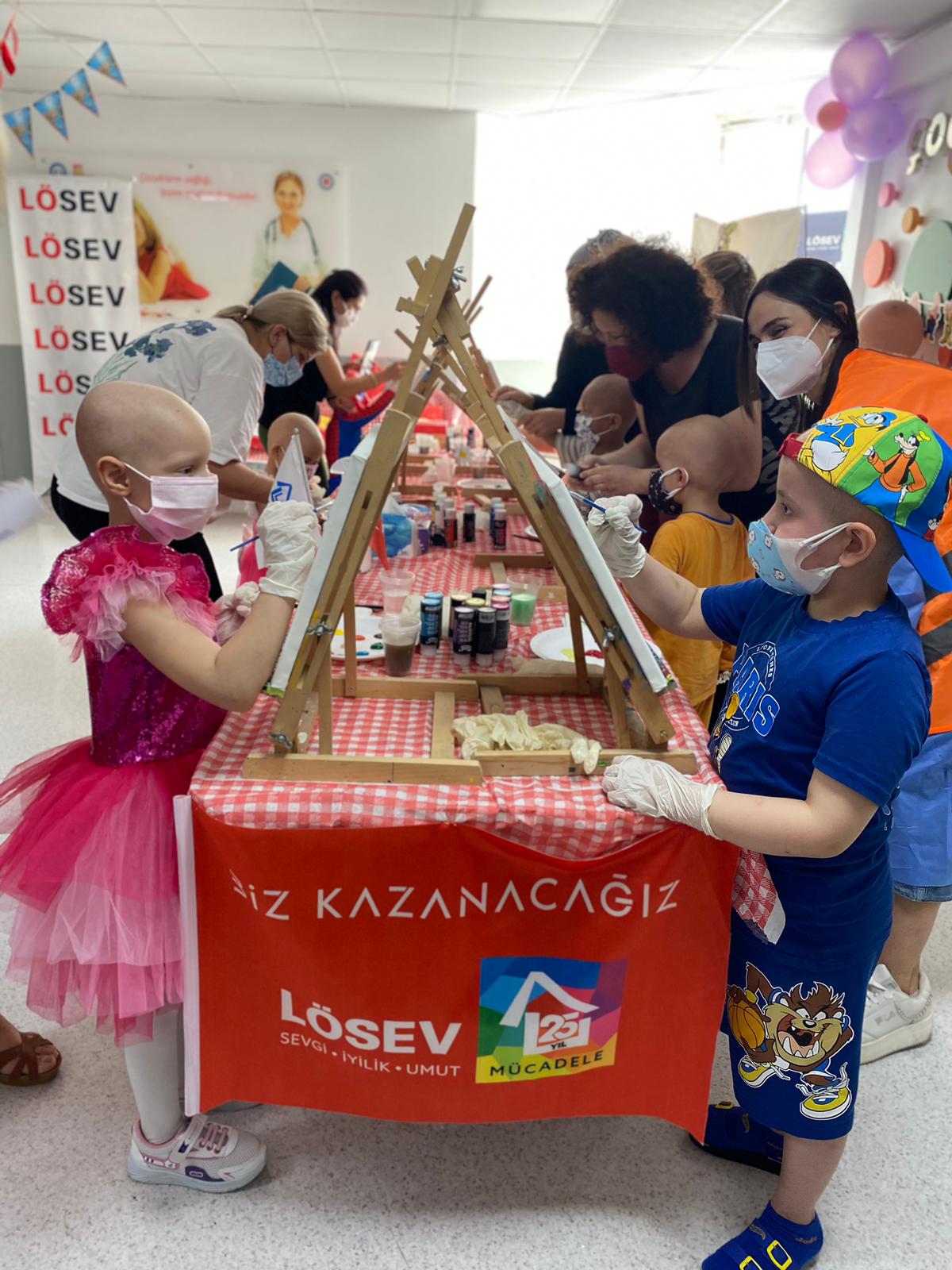 Etkinlik, hastanede yatan çocukların maskotlar eşliğinde dans etmesiyle başladı. Neşe dolu bu anlar, çocukların yüzlerindeki mutluluğu ve heyecanı görmek için yeterliydi. Ardından, çocuklar için hazırlanan kukla gösterisiyle kahkahalar havada uçuştu. Ancak etkinliğin en duygusal anlarından biri, LÖSEV gönüllüsü resim eğitmeninin rehberliğinde çocukların tuvallere Van Gogh’un ünlü “Ayçiçekleri” tablosunu resmettiği andı. Bu yaratıcı atölyede çocukların anneleri de yer aldı, çocuklarına yardım ederken onlar da eğlendi ve keyifli vakit geçirdi.