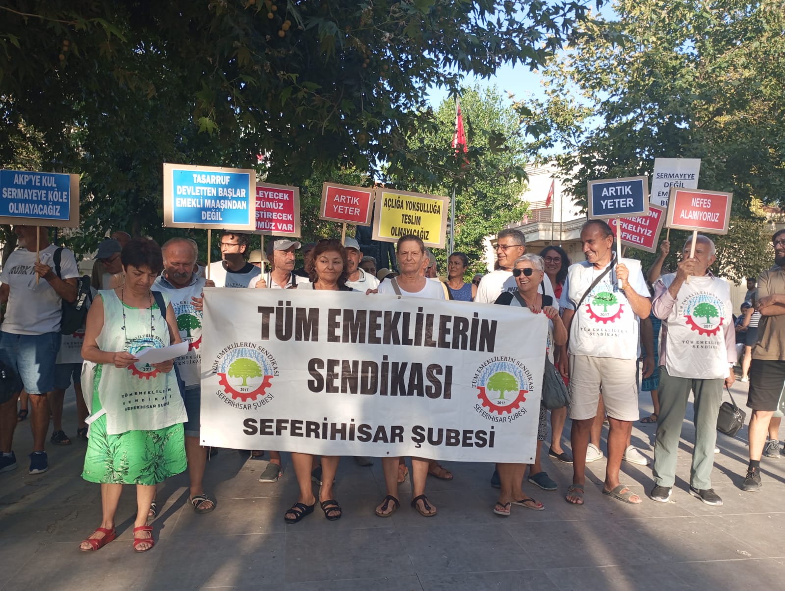 Basın açıklamasının ardından sendika üyeleri, “Yaşasın insanca yaşam mücadelemiz, yaşasın Tüm Emeklilerin Sendikası” sloganları eşliğinde alkışlarla tepkilerini dile getirdiler.