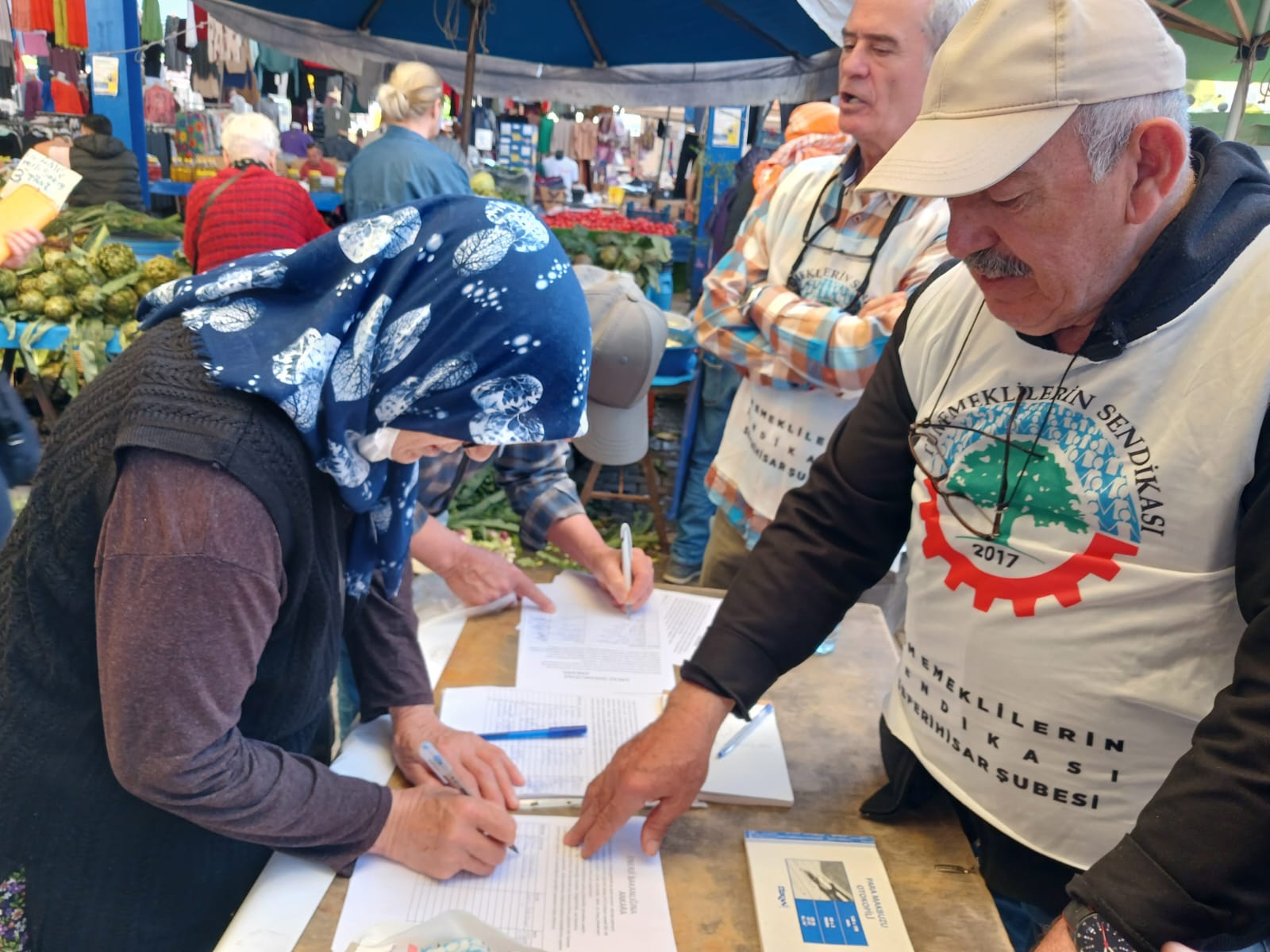 Seferihisar Pazar yerinde gerçekleşen basın açıklamasının ardından Enerji Bakanlığı’na gönderilmek üzere sendika üyeleri tarafından imza kampanyası gerçekleştirildi.