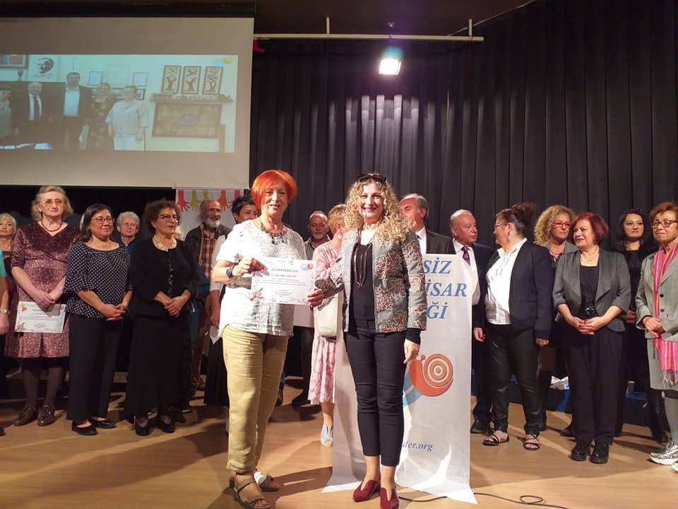 Slayt gösterileri ve konuşmaların ardından “Sanat Farkındalıktır” temalı resim sergisine eserleri ile katkı sunan sanatçılara teşekkür belgeleri sunuldu.