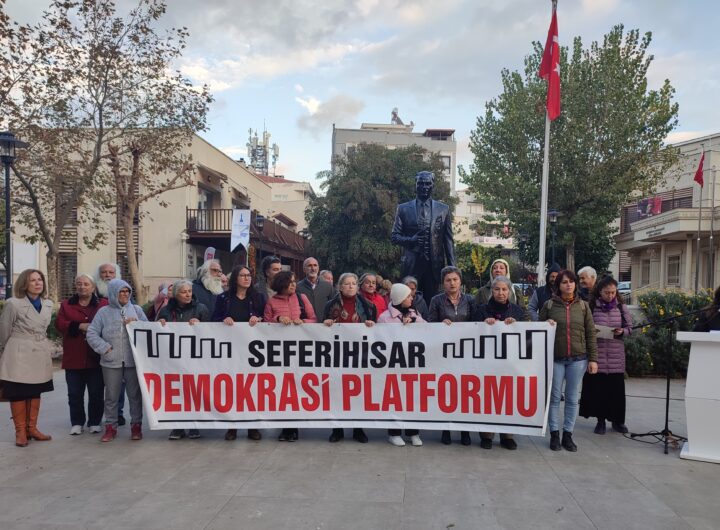Seferihisar Demokrasi Platformu üyeleri 25 Kasım Kadına Yönelik Şiddete Karşı Uluslararası Mücadele Günü dolayısı...