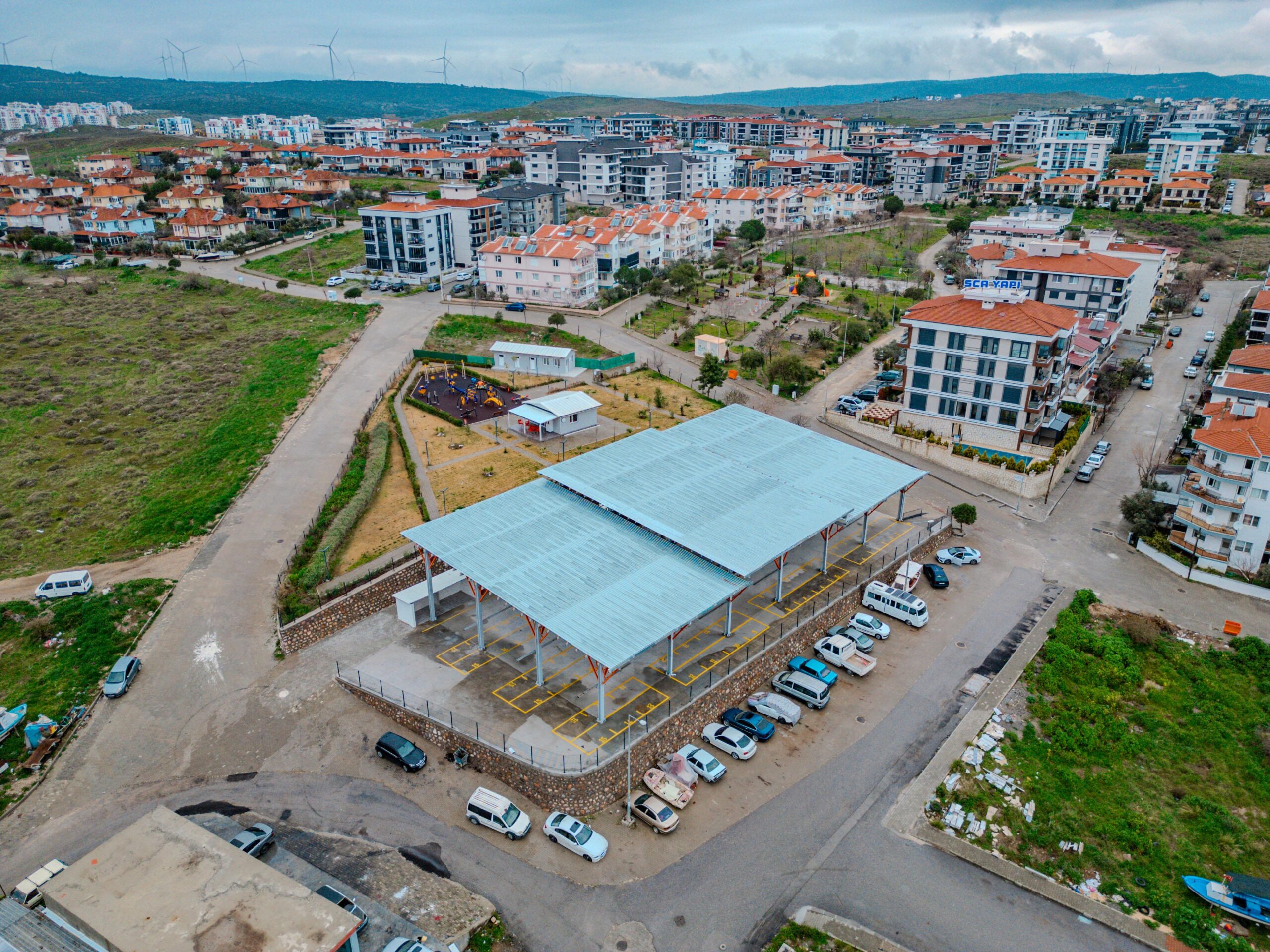 Pazar meydanı ve otopark düzenlemelerinin yanı sıra, 1500 m²’lik sosyal alanda kafeterya, park ve tuvalet gibi olanaklar sunulacak. Ayrıca, pazar yerinin çatısında bulunan fotovoltaik güneş enerjisi panelleri sayesinde pazarın elektriği kendi enerjisiyle karşılanacak.