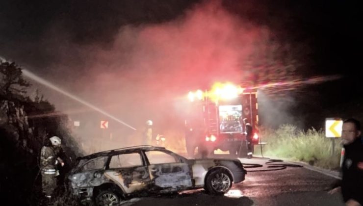 Seferihisar, Kavakdere yolu üzerinde bir araç, henüz belirlenemeyen bir nedenden dolayı alev aldı. Yangın, kısa sürede tüm aracı sararak, aracın tamamen yanmasına sebep oldu.