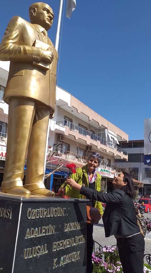 Ürkmezli hanımların “Bizde üretici pazarı istiyoruz, Belediye Başkanımıza iletin isteğini” Kadın Meclisi Başkanı Sevil Ege “Söz veriyorum, kendisine ileteceğim” diyerek yanıtladı. Ürkmez Mahallesindeki tiyatro grubu ile buluşan Kadın Meclisi Ürkmez Meydanına giderek Atatürk Anıtı önünde saygı duruşunda bulundu.