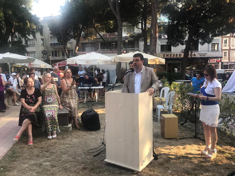 Kundakçı Romanını yazarak heykele ilham kaynağı olan yazar Cafer Öz’de bir konuşma yaptı. Öz “Seferihisar’ın artık unutulmaya yüz tutmuş milli mücadele tarihini kayıt almak için yapmış olduğum bu ikinci çalışma 3 yıl sürmüştür. Bölgeyi karış karış gezip bilge ve kadim insanlardan dönem bilgilerini aldım. 9 Eylül Üniversitesi Dr Mehmet Elmacı’nın yardımı ile resmi kayıtlar ile karşılaştırdım. Sayın Tunç Soyer Başkanımız bu eserimi sahiplenerek kültürel yayınlar kapsamına aldı. Bu eser bir belgesel niteliğindedir. Kundakçı eserinde kahraman Kundakçı Ömer Efe’nin usta sanatçı Cahit Koççoban tarafından anıtlaştırılmasından dolayı çok mutluyum. Bu eserin yapımında Seferihisar Belediyesinin büyük payı vardır. Bu katkılardan dolayı çok teşekkür ediyorum” dedi