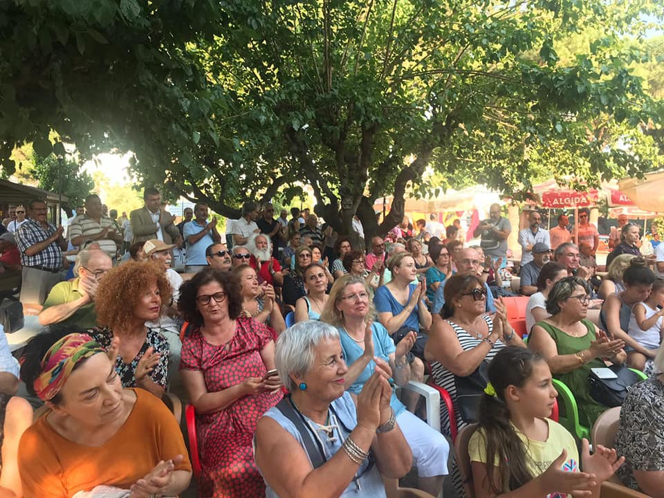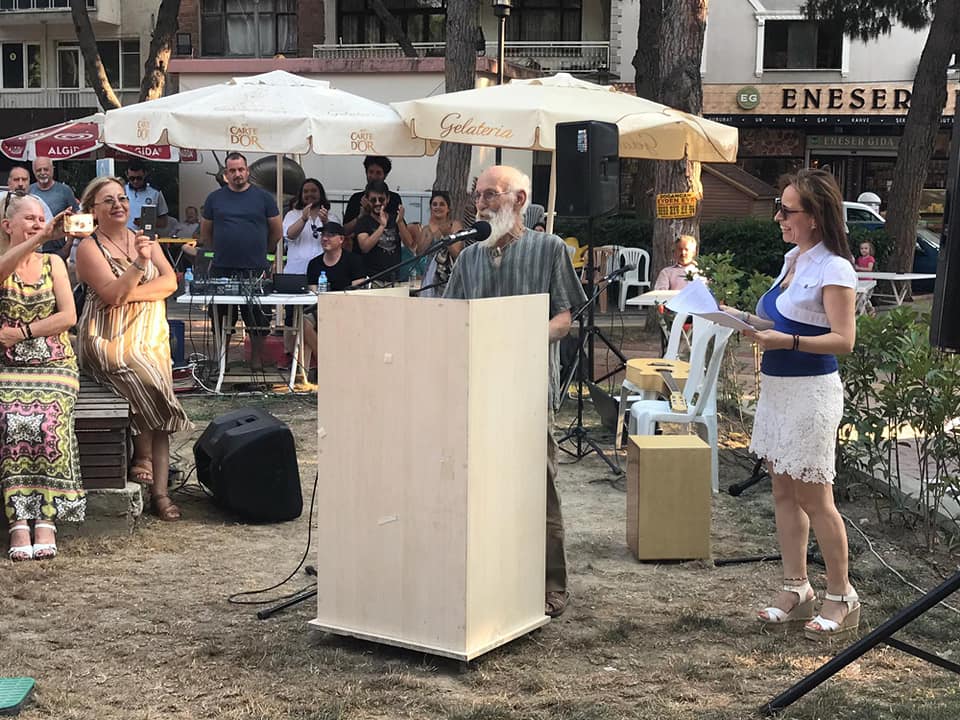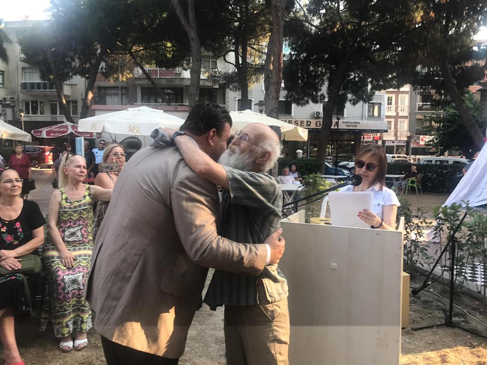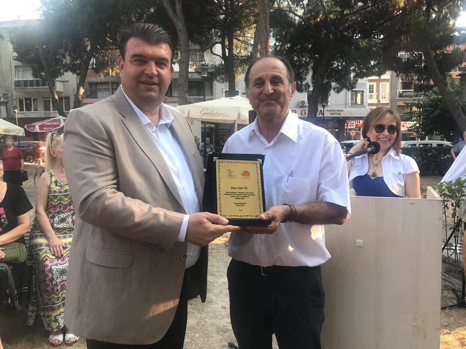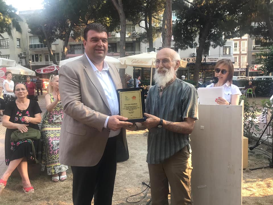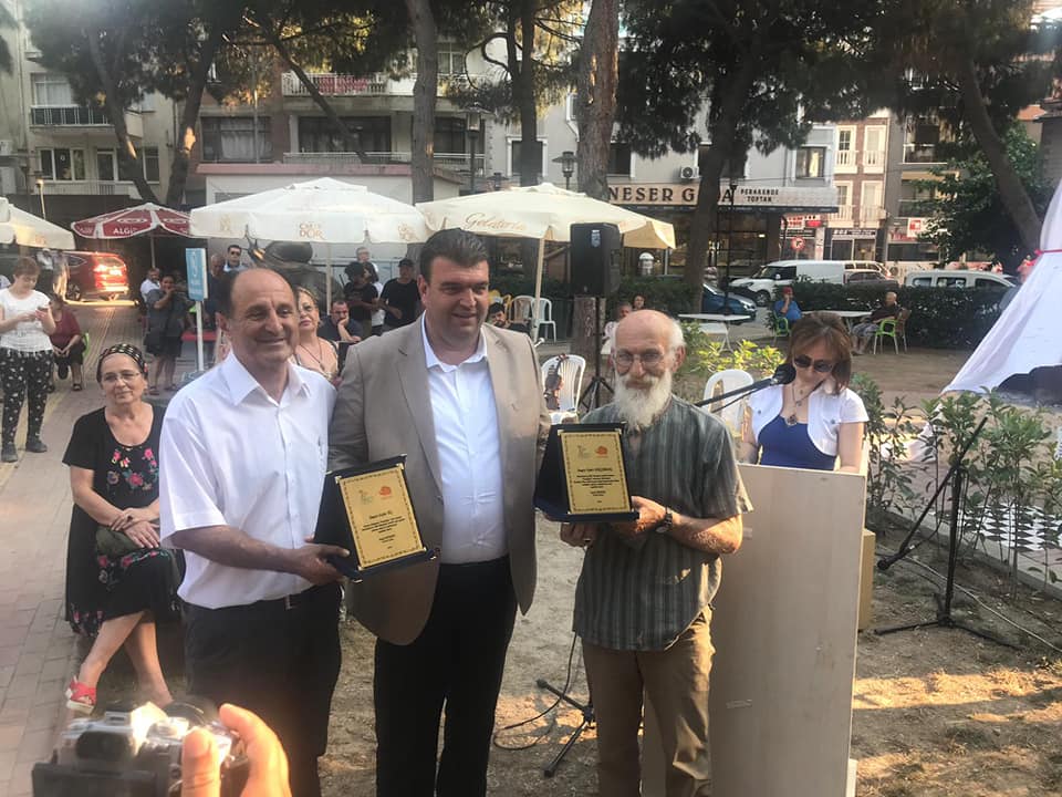 Sanatçılar Cafer Öz ve Cahit Koççoban’a Seferihisar Belediyesi tarafından birer plaket sunuldu.