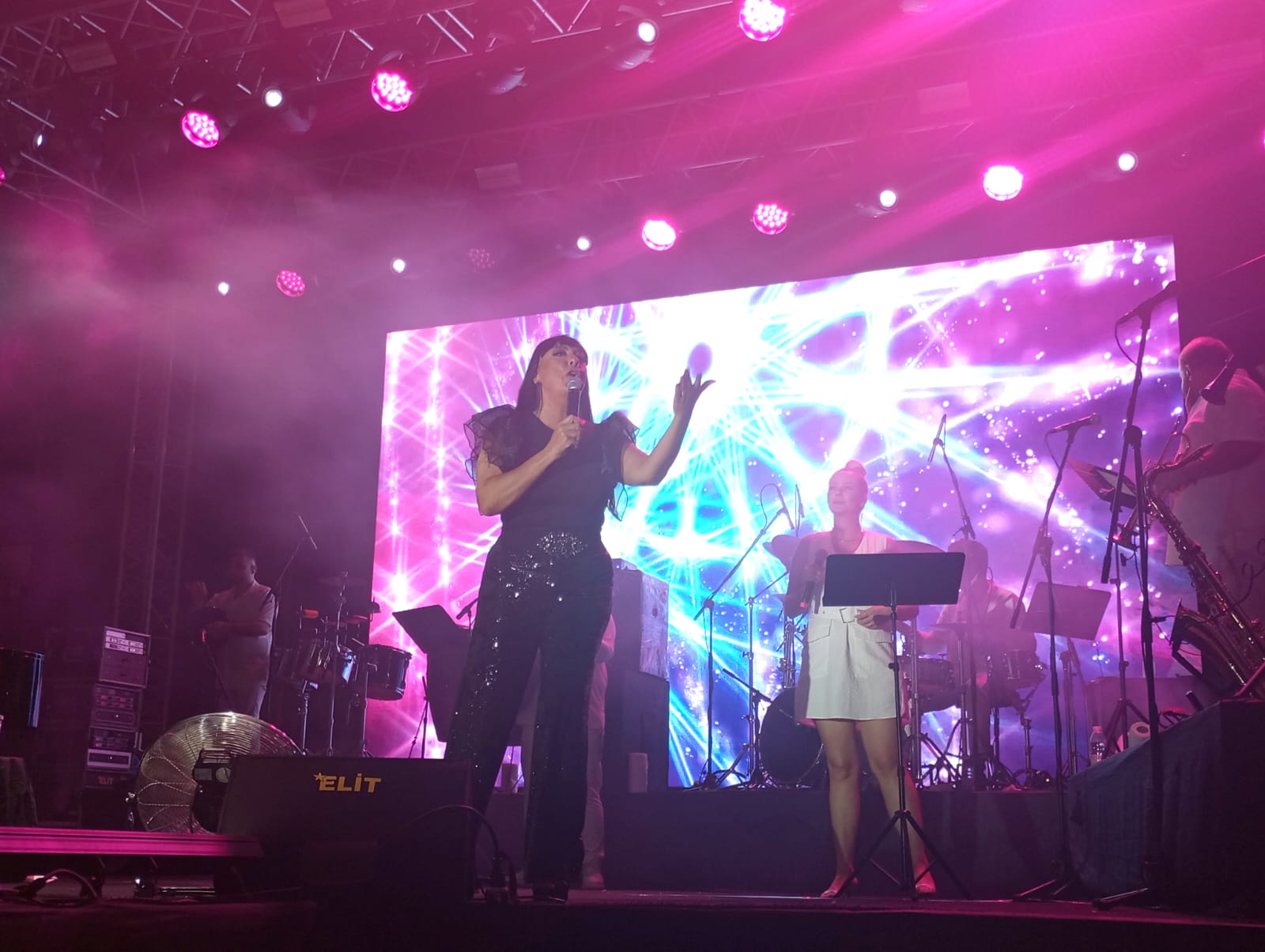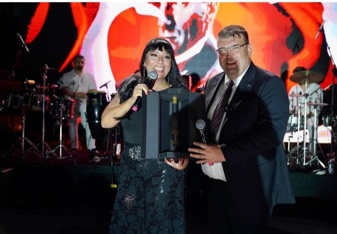 Konserin ardından, Seferihisar Belediye Başkanı İsmail Yetişkin, ünlü sanatçı Işın Karaca’ya çiçek takdim etti.