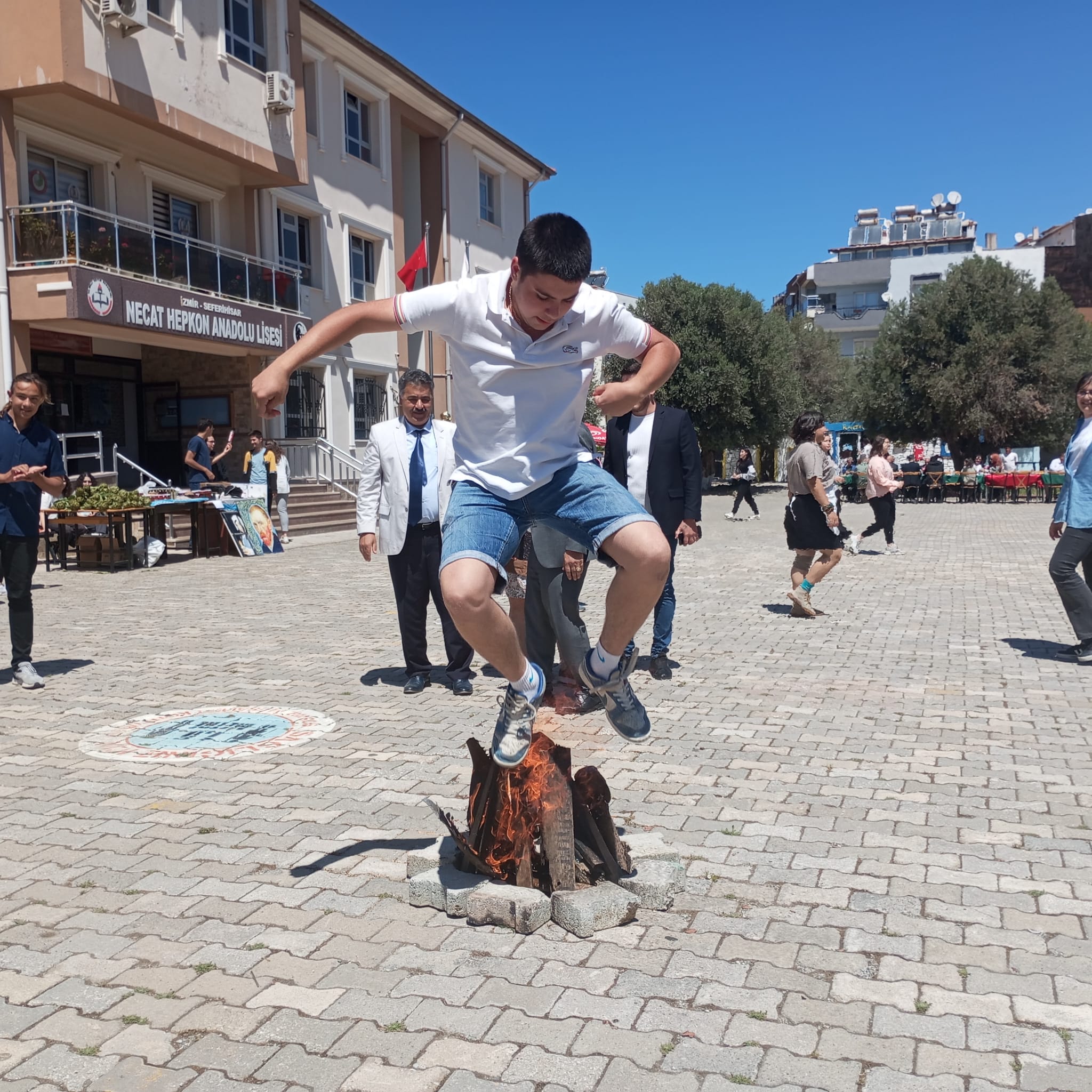Hıdrellez ateşi, Seferihisar İlçe Eğitim Müdürü Ahmet Vehbi Koç ve Necat Hepkon Anadolu Lisesi Okul Müdürü Ahmet Yürümez tarafından yakıldı.