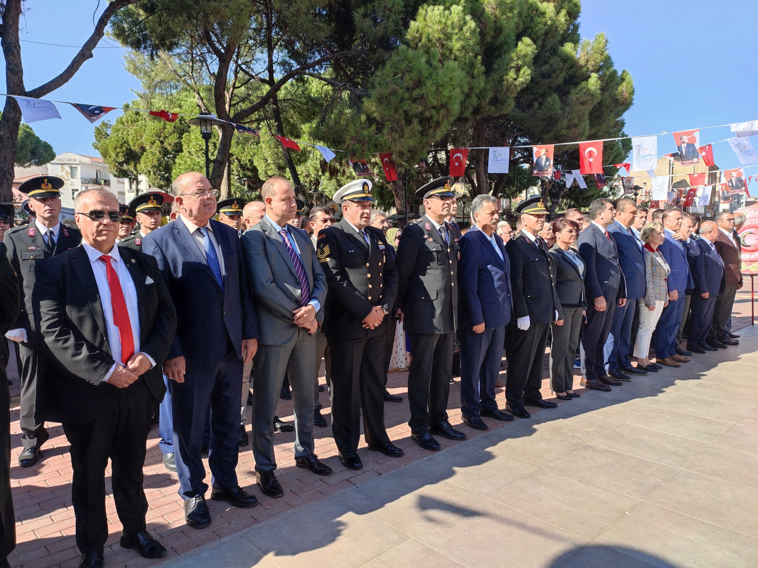 Kaymakam Mehmet Şerif Olçaş ve Belediye Başkan İstiklal Marşı ve Atatürk Anıtı’na çelenk sunmasının ardından bir dakikalık saygı duruşu ve İstiklâl Marşı’nın okunmasıyla tören sona erdi.