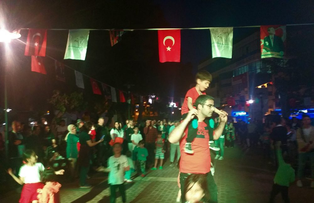 Gençlerin yanı sıra ailelerde parkta oturarak müzikli geceyi izledi ve şarkılara eşlik etti.