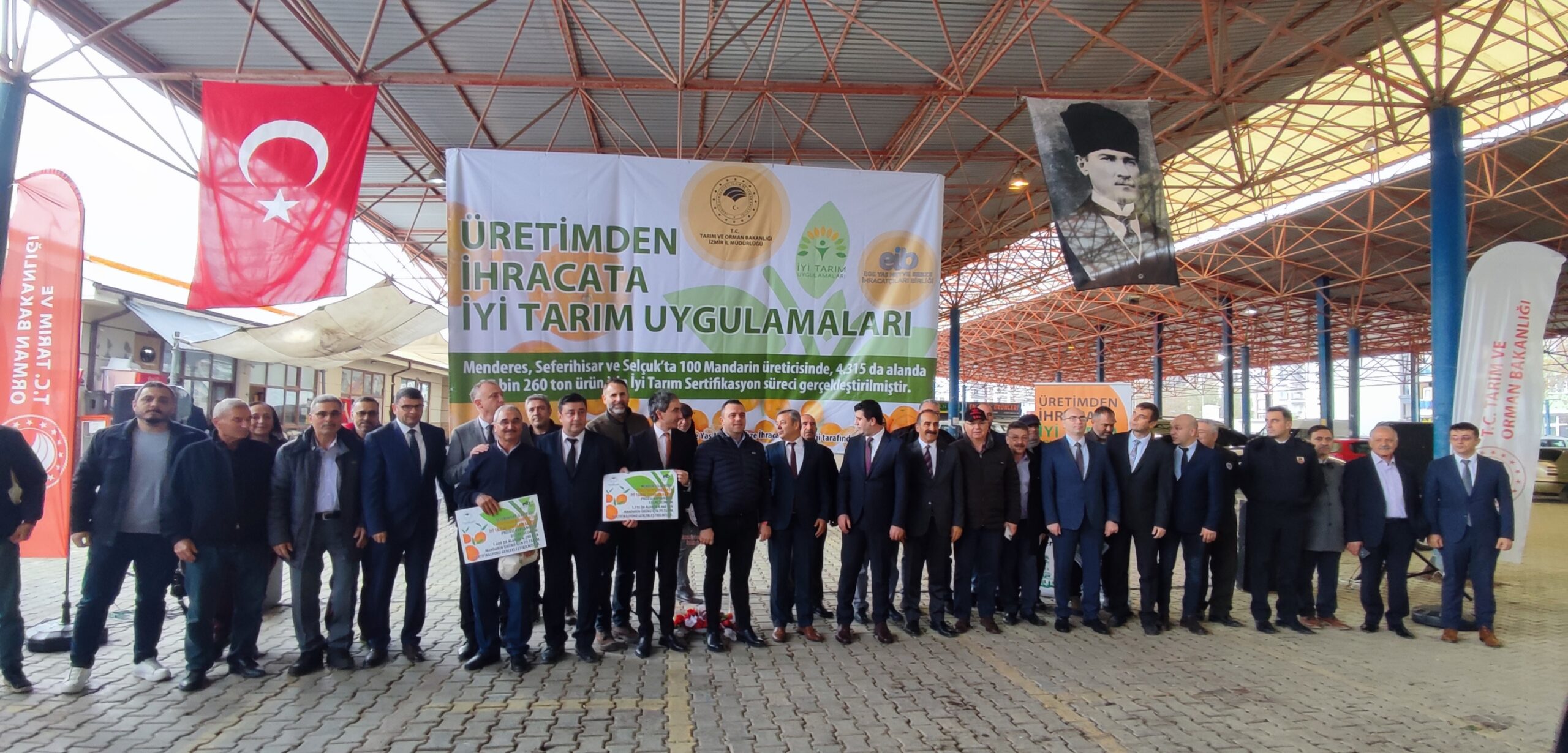 Çevre, İnsan ve hayvan sağlığına zarar vermeyen, doğal kaynakların korunması, tarımda izlenebilirlik ve sürdürülebilirlik ile güvenilir ürün arzının sağlanması için yapılan İyi Tarım Uygulamalarına katılan Seferihisar, Selçuk ve Menderes ilçelerinden 100 çiftçiye adına üç çiftçiye sertifikaları verildi.