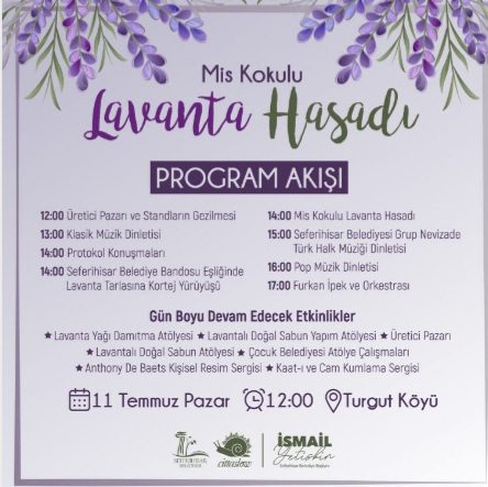 Herkesi Lavanta hasatı şenliğine davet eden Seferihisar Belediye Başkanı İsmail Yetişkin “Çiftçilerimiz lavanta çiçeğinin üretim alanlarını genişleterek, lavantadan bir çok farklı ürün ortaya çıkardı. Lavantanın yağını çıkarmaya başladık, oda parfümü ürettik. Lavanta ekimlerinin özellikle Turgut köyünde çifçilerimizle birlikte kullanılmayan arazilerde yapılmasını sağlayarak bu arazilerin tarıma kazandırılmasını sağladık” dedi. 2020 yılında pandemi dolayısıyla gerçekleştirilemeyen lavanta hasadı etkinliklerinin bu yıl telafi edileceğini söyleyen Başkan Yetişkin ‘’Tüm vatandaşlarımızı 11 Temmuz Pazar günü saat 12.00’de gerçekleştireceğimiz Lavanta Hasadı etkinliğimize bekliyorum” dedi