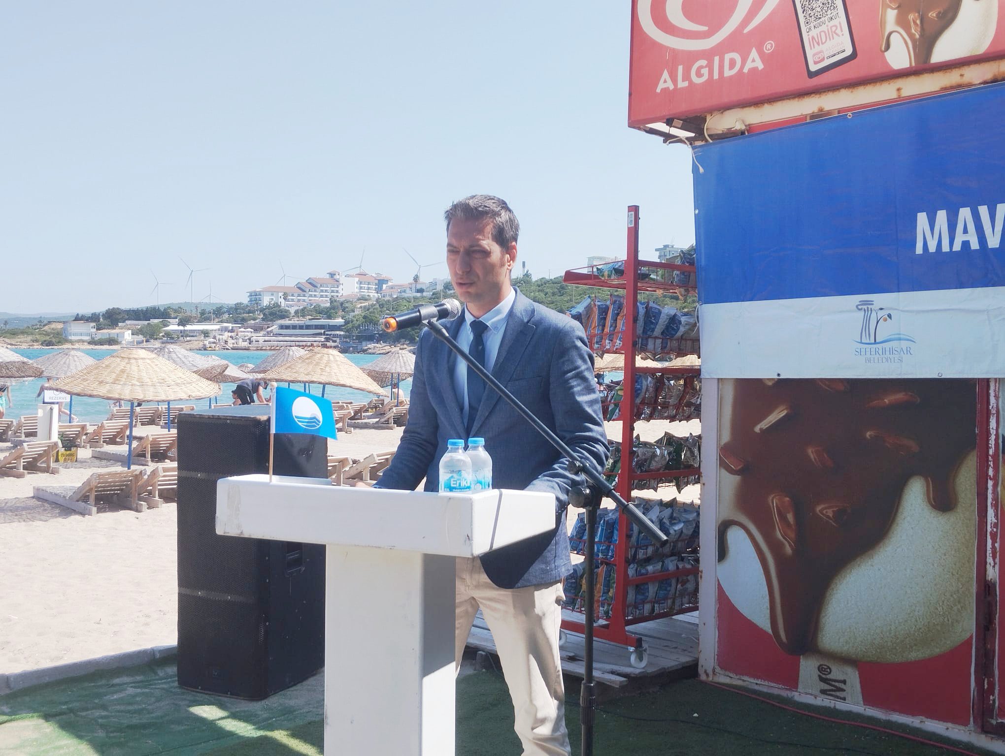 Akkum Mavi Bayraklı Plaj açılış töreninde konuşan Seferihisar Belediye Başkanı İsmail Yetişkin, “Akkum Plajı, yıllardır Seferihisar’ın en çok ziyaret edilen, berrak deniziyle akıllarda yer eden kıymetli bir alan. Bugün sadece Akkum’un değil, ilçemizdeki 10 ayrı Mavi Bayraklı plajımızın temsili açılışını gerçekleştiriyoruz. Mavi Bayrak, yalnızca bir temizlik simgesi değil; turizmde kalite, doğaya saygı ve sürdürülebilirliğin göstergesidir,” dedi.