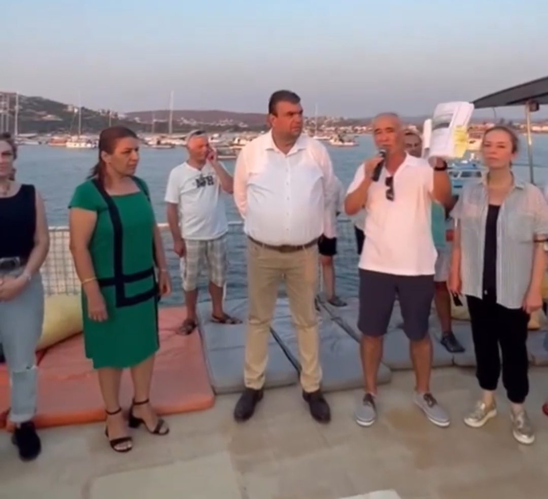 Teknelerle tepki turuna Seferihisar Belediye Başkanı İsmail Yetişkin, İBB Seferihisar yerel hizmetler koordinatörü Gürhan Özata, Seferihisar CHP ilçe Başkanı Senem Gürer Solak, Seferihisar Belediye Başkanı Yardımcıları Yelda Celiloğlu, Nuriye Hepterlikçi ile Sığacıklı balıkçılar ve vatandaşlar katıldı.