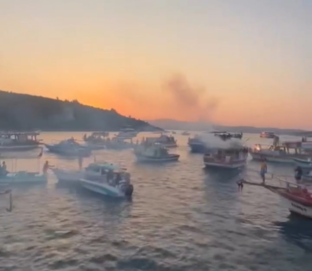 Saat 19.00 da başlatan teknelerle tepki türü yaklaşık bir saat sürdü. Balıkçılar bir pankart açarak “Marina’nın değil, balıkçı barınağının büyütülmesini istiyoruz” mesajı verdi.