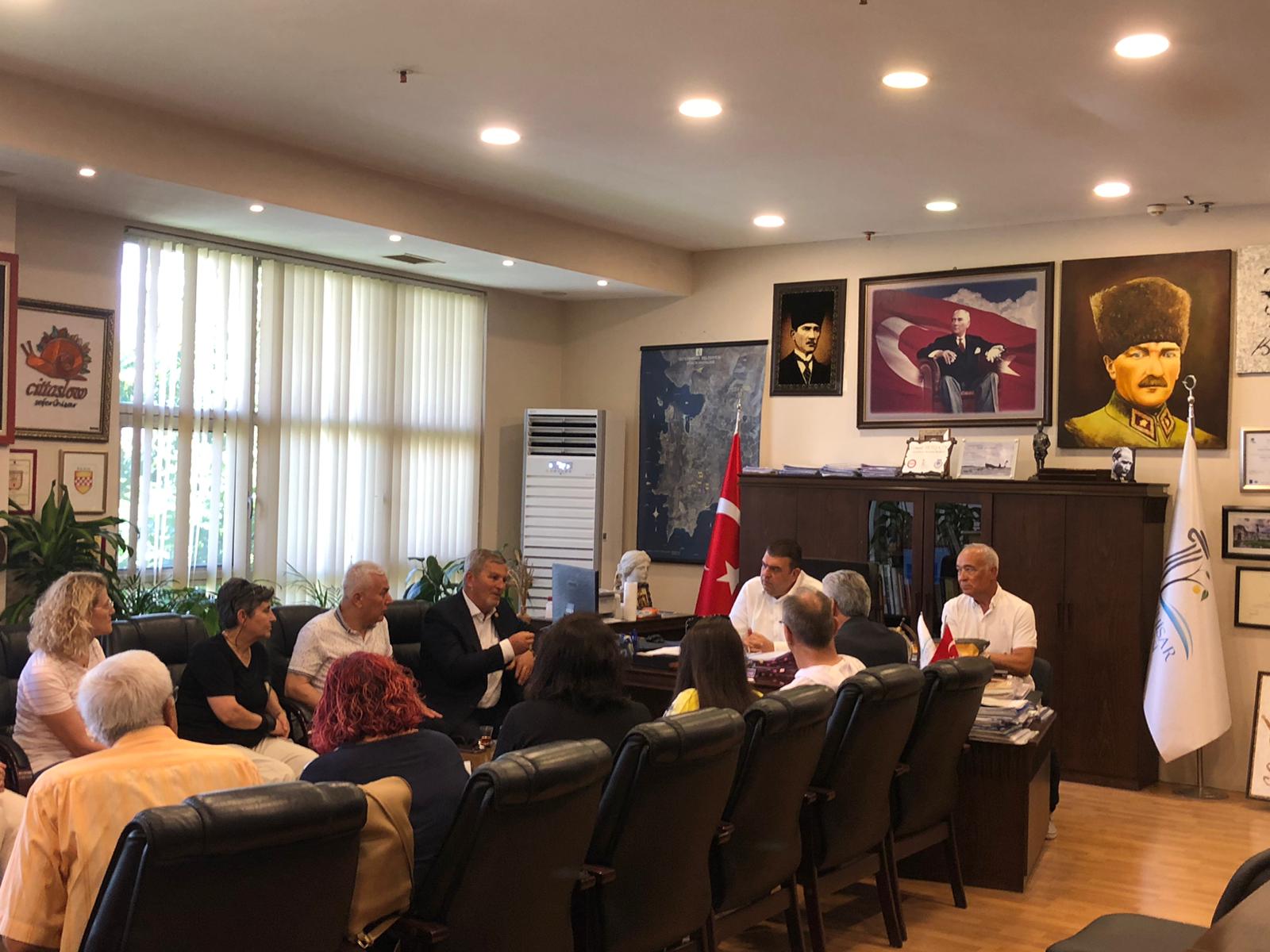 İlk olarak TEMAD Seferihisar Şubesi’ni ziyaret eden heyet, burada şube yönetimi ve üyelerle buluştu. Ziyaret sırasında Hamza Dürgen, TEMAD’ın genel merkezde gerçekleştirdiği ve planladığı faaliyetler hakkında bilgi verdi. Ayrıca üyelerin sorunlarını ve taleplerini dinleyerek çözüm yolları aradı.