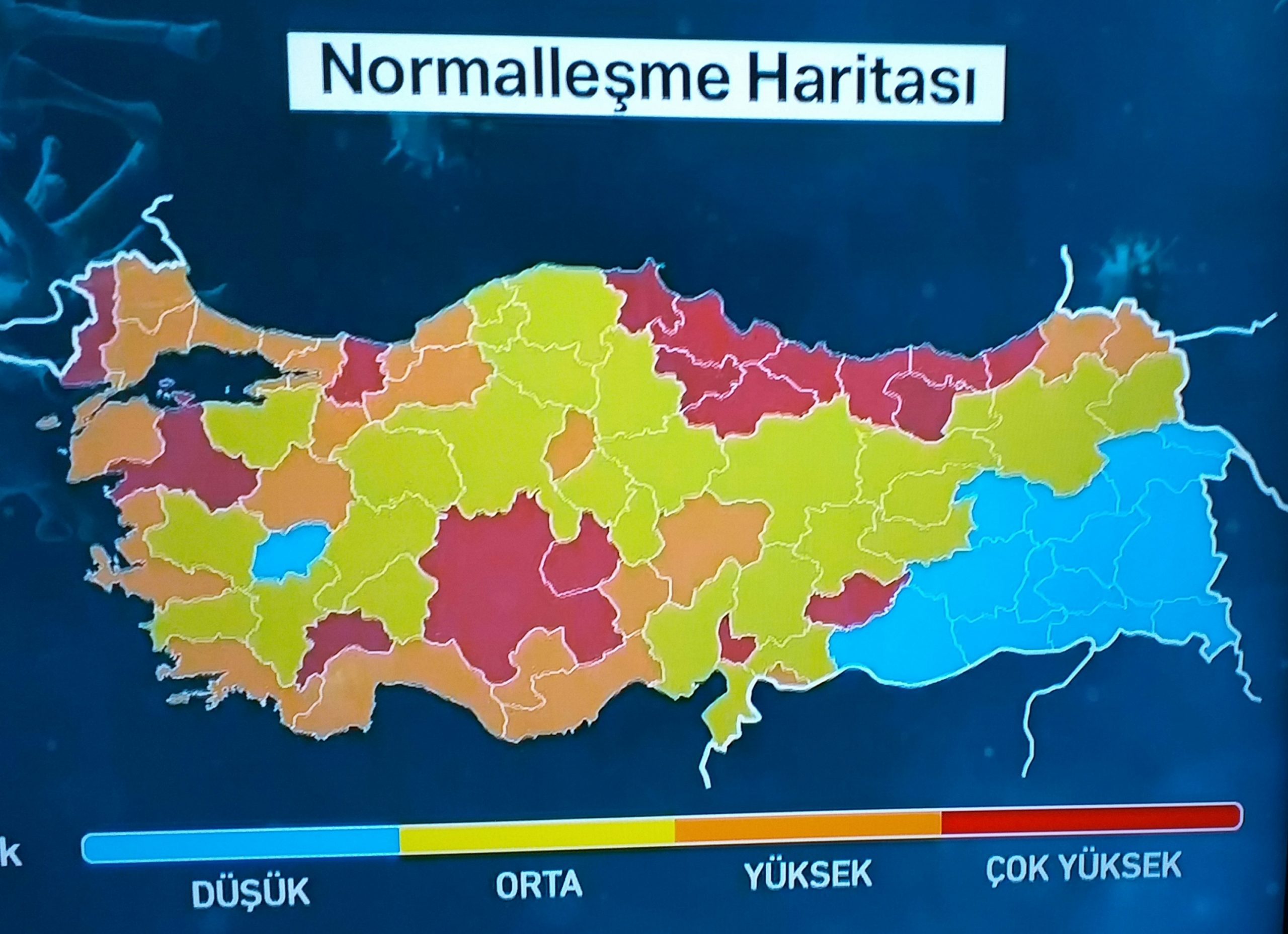 “Sokağa çıkma kısıtlaması, düşük ve orta riskli illerde tamamen kalkacak, yüksek ve çok yüksek riskli illerde bir müddet daha pazar günü devam edecek. Tedbirlerin sıkılaştırılması veya gevşetilmesi kararı, salgının her bir ilimizdeki iyileşme veya kötüleşme durumuna göre verilecek.”